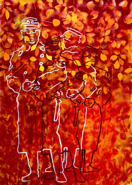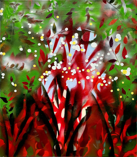 Geister im Busch / 140x100 / 2018 / Öl und Sprayfarbe auf Leinwand