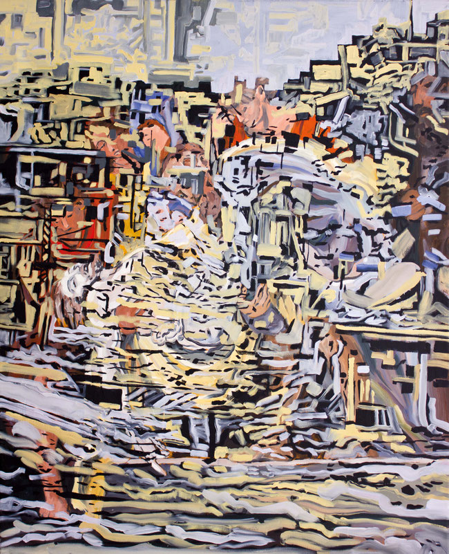 GRABLEGUNG UND CITY / Ölfarbe auf Leinwand / 95 x 100 cm / 2020